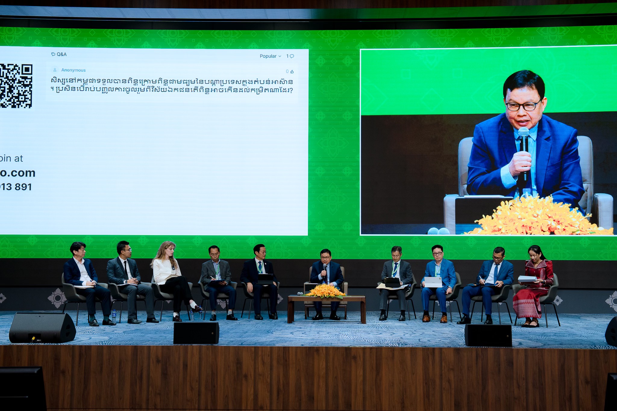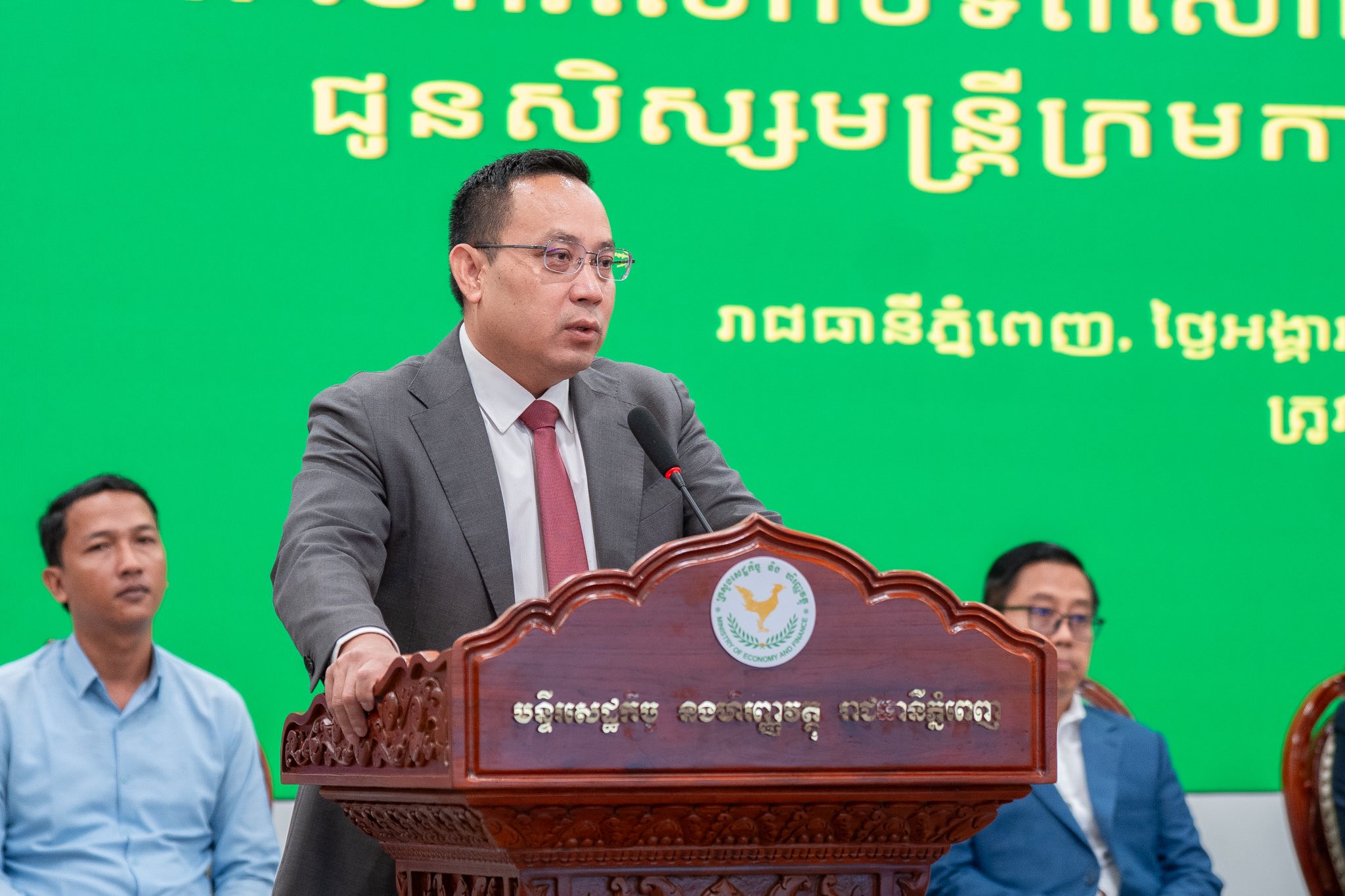 ពិធីប្រកាសដាក់ឱ្យអនុវត្តជាផ្លូវការនូវឯកសារ “កម្មវិធីលើកកម្ពស់ភាពប្រកួតប្រជែង បង្កើនពិពិធកម្ម និងពង្រឹងភាពធន់ ដើម្បីជំរុញកំណើនសេដ្ឋកិច្ច នៅក្នុងបរិការណ៍សកល ដែលមានភាពមិនប្រាកដប្រជាខ្ពស់ របស់រាជរដ្ឋាភិបាល នីតិកាលទី៧ នៃរដ្ឋសភា” ក្រោមអធិបតីភាពដ៏ខ្ពង់ខ្ពស់ ឯកឧត្តមអគ្គបណ្ឌិតសភាចារ្យ អូន ព័ន្ធមុនីរ័ត្ន ឧបនាយករដ្ឋមន្ត្រី រដ្ឋមន្ត្រីក្រសួងសេដ្ឋកិច្ច និងហិរញ្ញវត្ថុ និងជាប្រធានក្រុមប្រឹក្សាអាជ្ញាធរសេវាហិរញ្ញវត្ថុមិនមែនធនាគារ ព្រមទាំងមានការអញ្ជើញចូលរួមពី ឯកឧត្តម លោកជំទាវ ថ្នាក់ដឹកនាំ និងមន្ត្រីជំនាញពាក់ព័ន្ធផងដែរ។