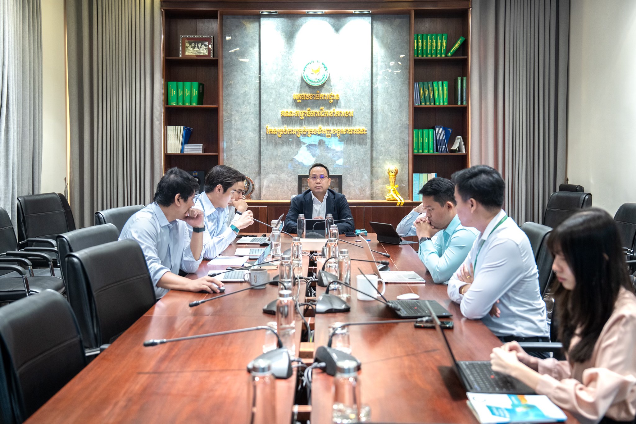 កិច្ចប្រជុំស្តីពី ការតាមដាន ត្រួតពិនិត្យ និងវាយតម្លៃលេីការគ្រប់គ្រង និងការប្រេីប្រាស់ទ្រព្យសម្បត្តិរដ្ឋប្រចាំឆ្នាំ២០២៥ ក្រោមអធិបតីភាព ឯកឧត្តមបណ្ឌិតសភាចារ្យ ហ៊ាន សាហ៊ីប រដ្ឋលេខាធិការក្រសួងសេដ្ឋកិច្ចនិងហិរញ្ញវត្ថុ និងជាប្រធាន គ.ប.ទ. និង ក.គ.ម. ដោយមានការអញ្ជើញចូលរួមផងដែរពី ឯកឧត្តម មាស សុខសេនសាន រដ្ឋលេខាធិការ និង លោកជំទាវ លឹម ឈុននី អនុរដ្ឋលេខាធិការ អនុប្រធាន គ.ប.ទ និងក.គ.ម. និង ឯកឧត្តម លោកជំទាវ លោក លោកស្រី តំណាងអង្គភាពពាក់ព័ន្ធទាំងថ្នាក់កណ្តាល និងថ្នាក់មូលដ្ឋាន។